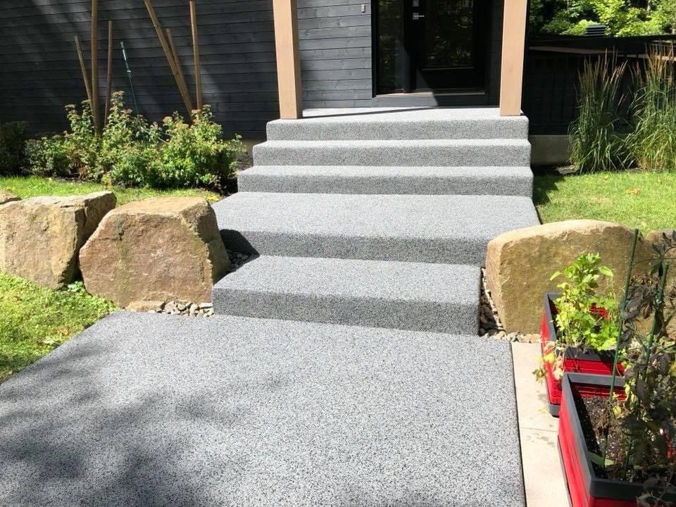 Notre équipe vous offre son expertise en caoutchouc coulé sur la Rive-Nord. Que vous soyez de Laval, Saint-Sauveur ou Saint-Eustache, nous vous garantissons des services à la hauteur de vos attentes.